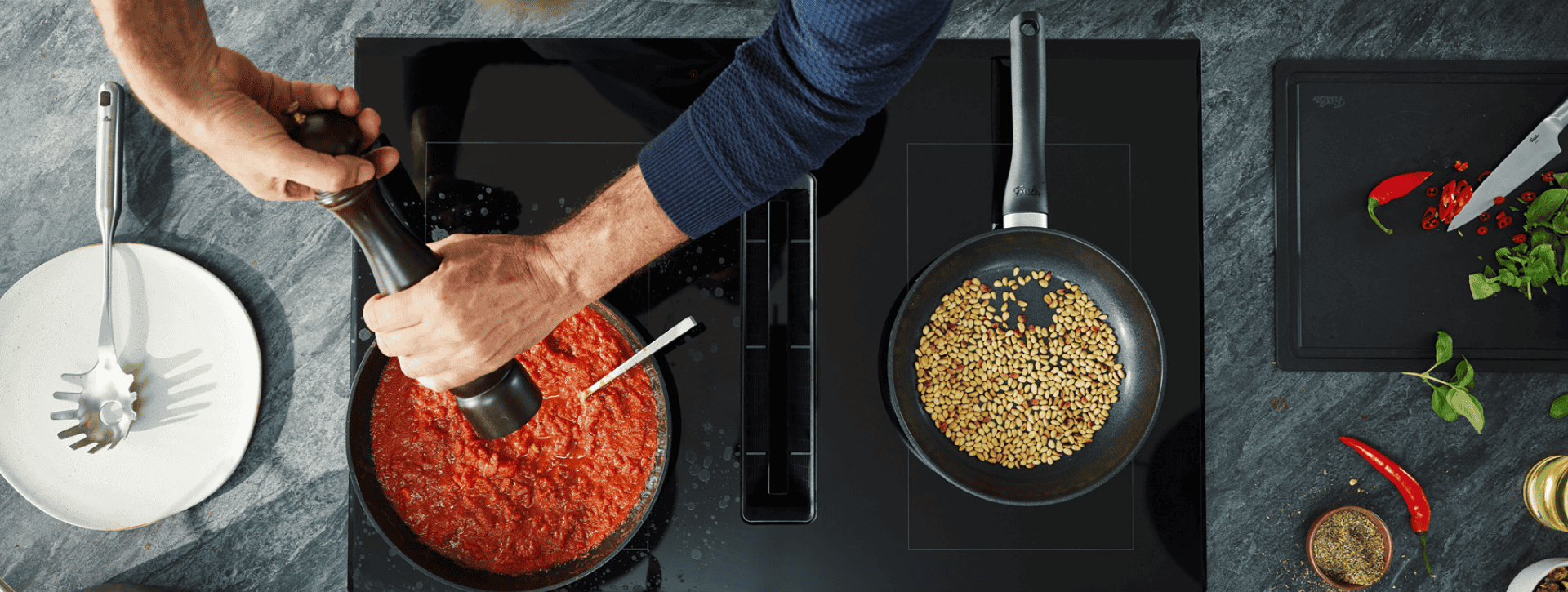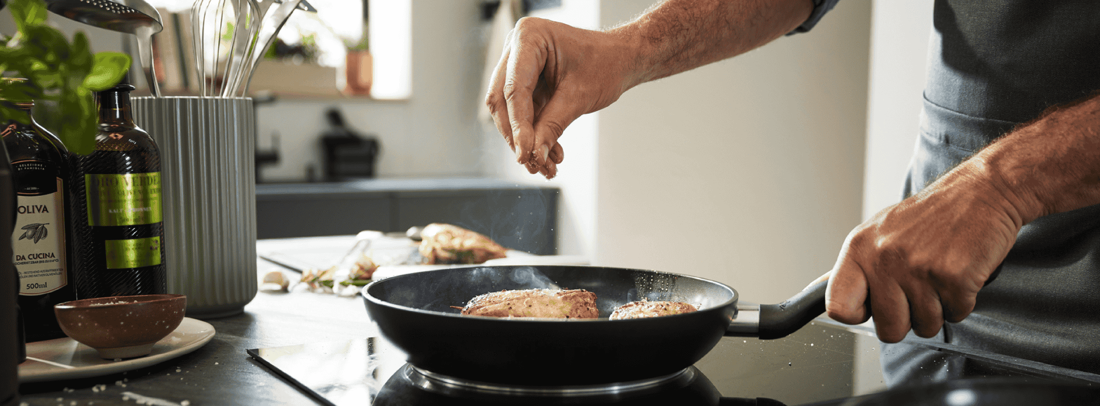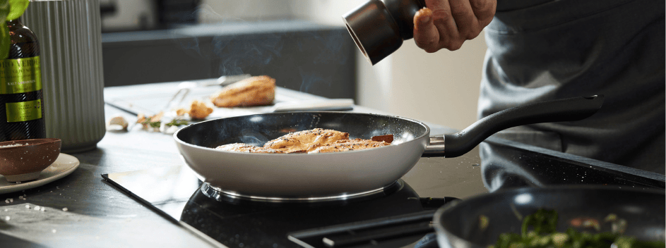 Fissler Essential® offers the perfect pans for everyday use. With their ceramic non-stick coating , manufactured without PFAS/PTFE, they are ideal for gently and crisply frying meat, vegetables, and egg dishes.