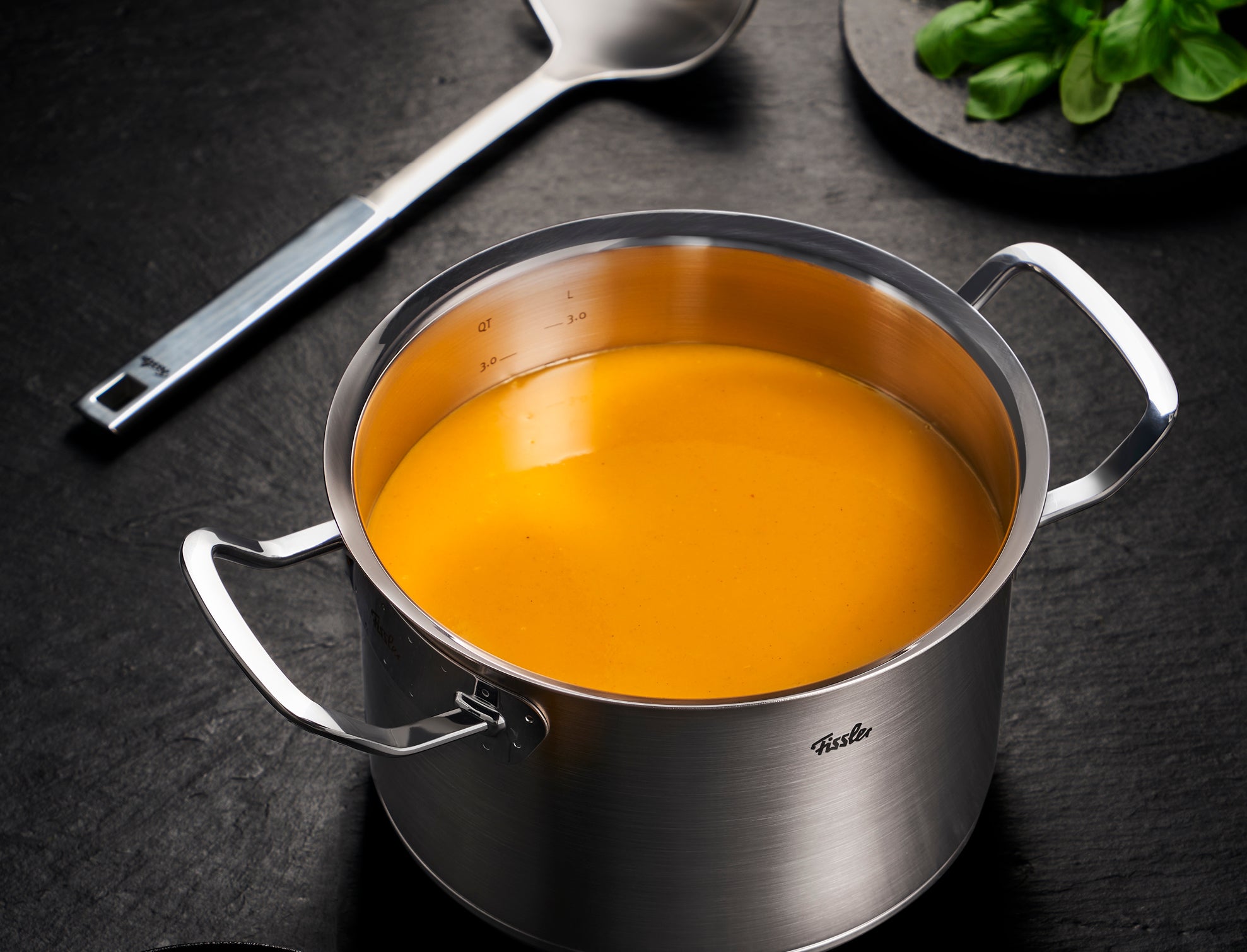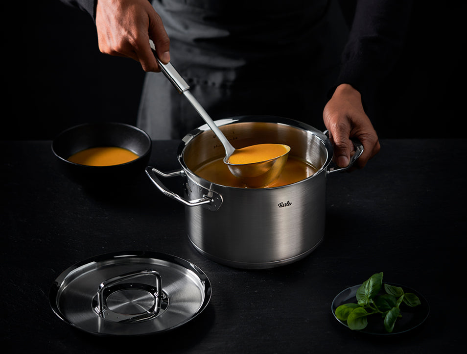 The Original-Profi Collection® not only offers a versatile range of pots and pans for all uses, but now also a collection of essential kitchen utensils, from spatulas to slotted spoons, from serving spoons to pizza cutters. With their elegant look in polished 18/10 stainless steel, these practical kitchen tools perfectly complement the cookware of the Original-Profi Collection®.