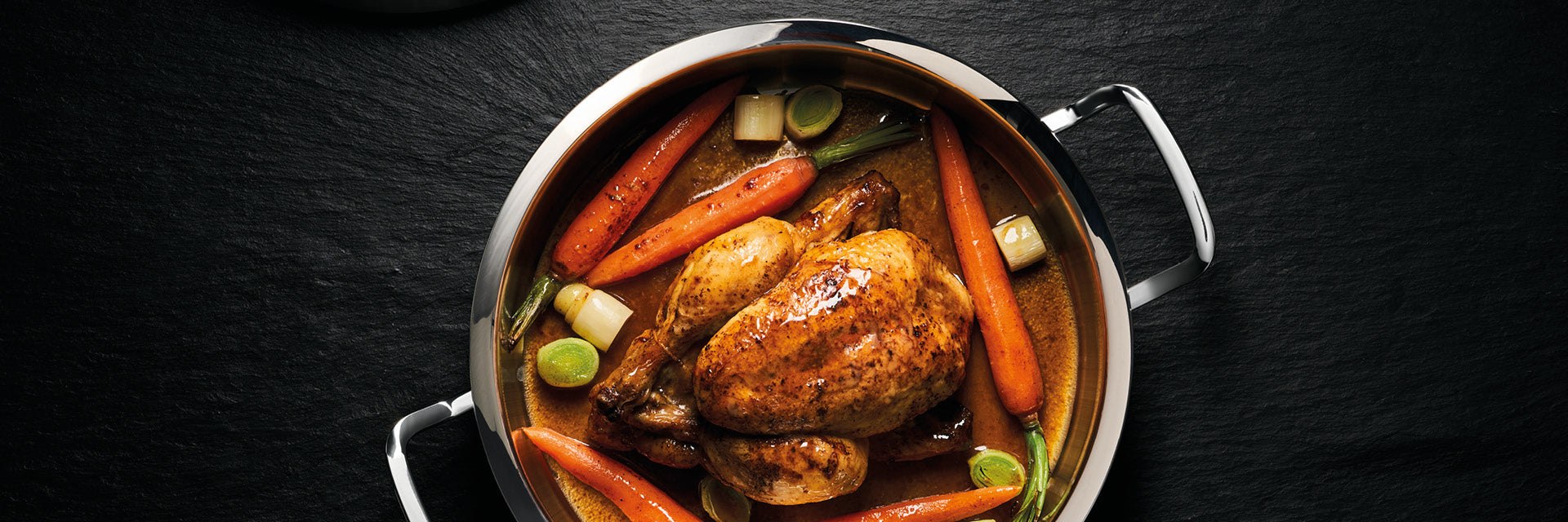 Fissler offers high-quality stainless steel braising pots that are heat-resistant and therefore ideal for both searing at high temperatures on the hob and braising in the oven.