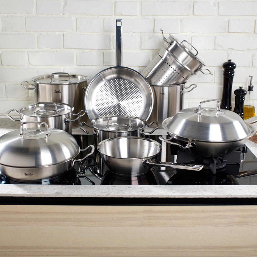 The exclusive, energy-efficient Fissler Cookstar® base is suitable for all types of cooktops, including induction, and ensures optimal heat distribution.