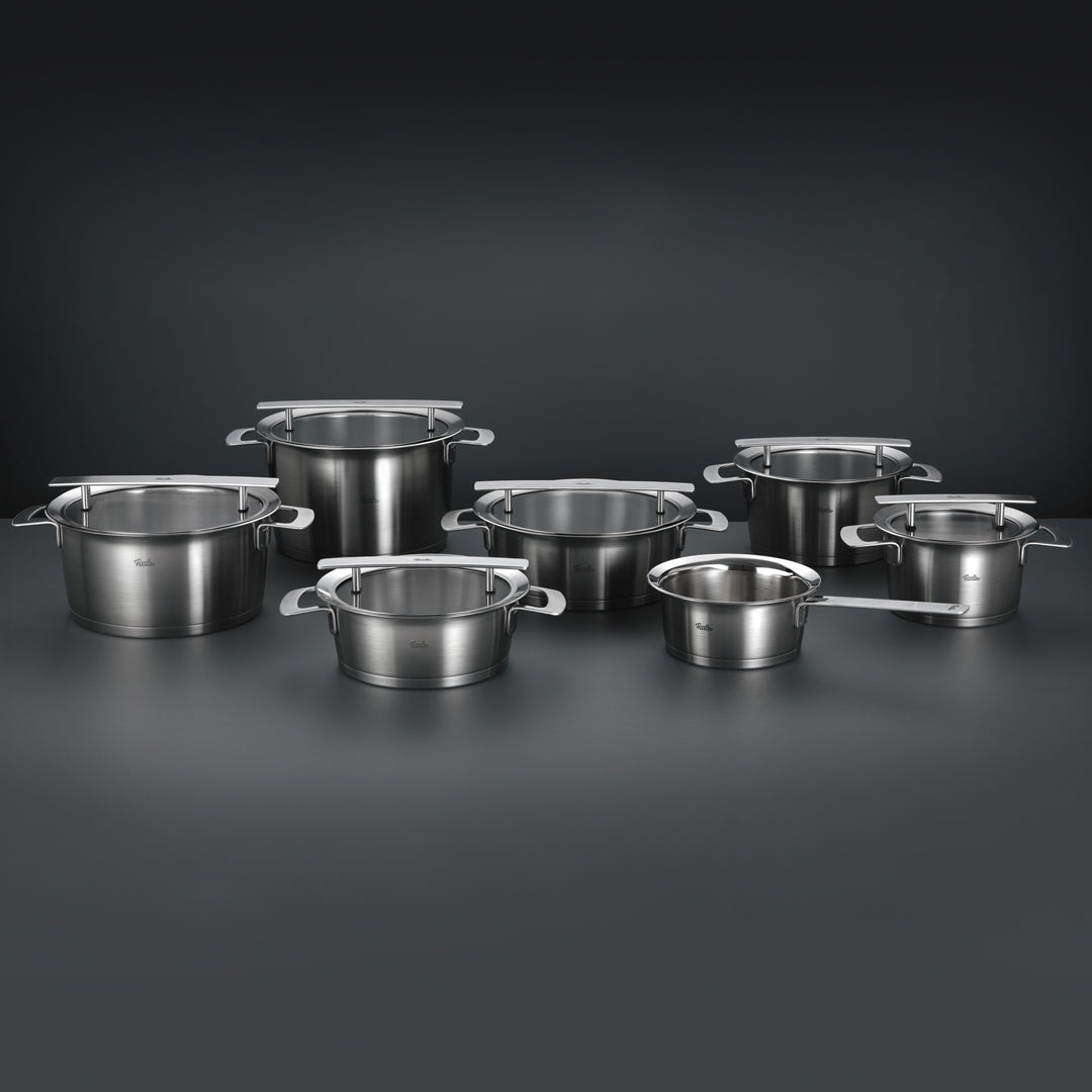 The Phi Collection: distinctive, innovative, and multifunctional cookware made in Germany. Developed in collaboration with some of Europe's most renowned design experts, Phoenix Design, the collection achieves a perfect balance between design and proportions, combined with high-quality materials. The striking lid and handle, shaped like the Greek letter Phi, complete the look. This collection is designed for passionate cooks who value both function and form.
