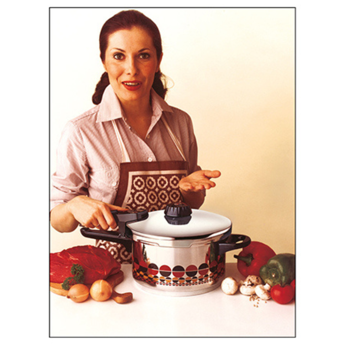Der Fissler Vitavit® Schnellkochtopf erscheint erstmals mit einem unverwechselbaren, roten Deckel. Das Sicherheitsventil des Topfes war das erste seiner Art und schont bis heute Aromen und Vitamine.